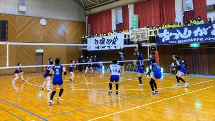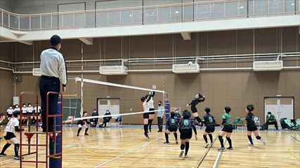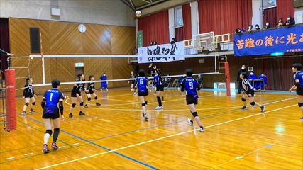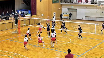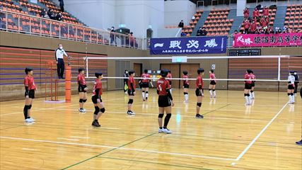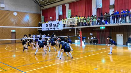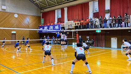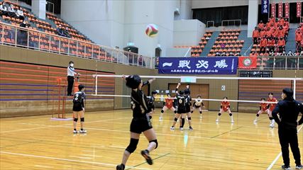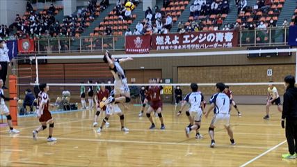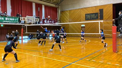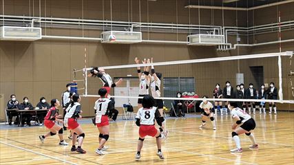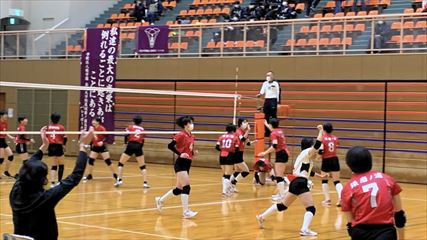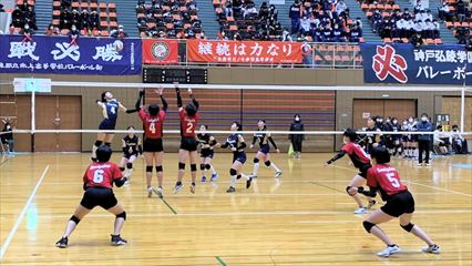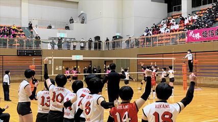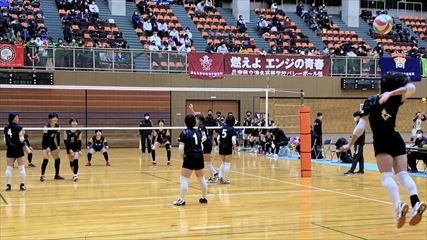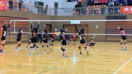 | 第1セットは、9対9まで姫路南④池田真悠、氷上①木下結稀の打ち合いで両チーム一進一退の攻防が続くも、④池田のフェイントなど多彩な攻撃で7連続得点した氷上が15対9まで一気に引き離した。中盤、姫路南は⑥磯邊陽日のスパイクで粘るも、氷上①木下のブロックや、⑤西村心花のスパイクが決まり、第1セットを奪った。第2セット、序盤は④池田のスパイクや氷上のミスで7対1まで姫路南がリードするも、氷上の強烈なスパイクが決まり10対10まで追いついた。姫路南は①仲江李花のレシーブで粘るが、氷上は⑤西村のスパイクや②小林結のサービスエースで流れを掴み、最後は氷上⑥高下百々花のスパイクが決まり、ゲームセットとなった。 | |